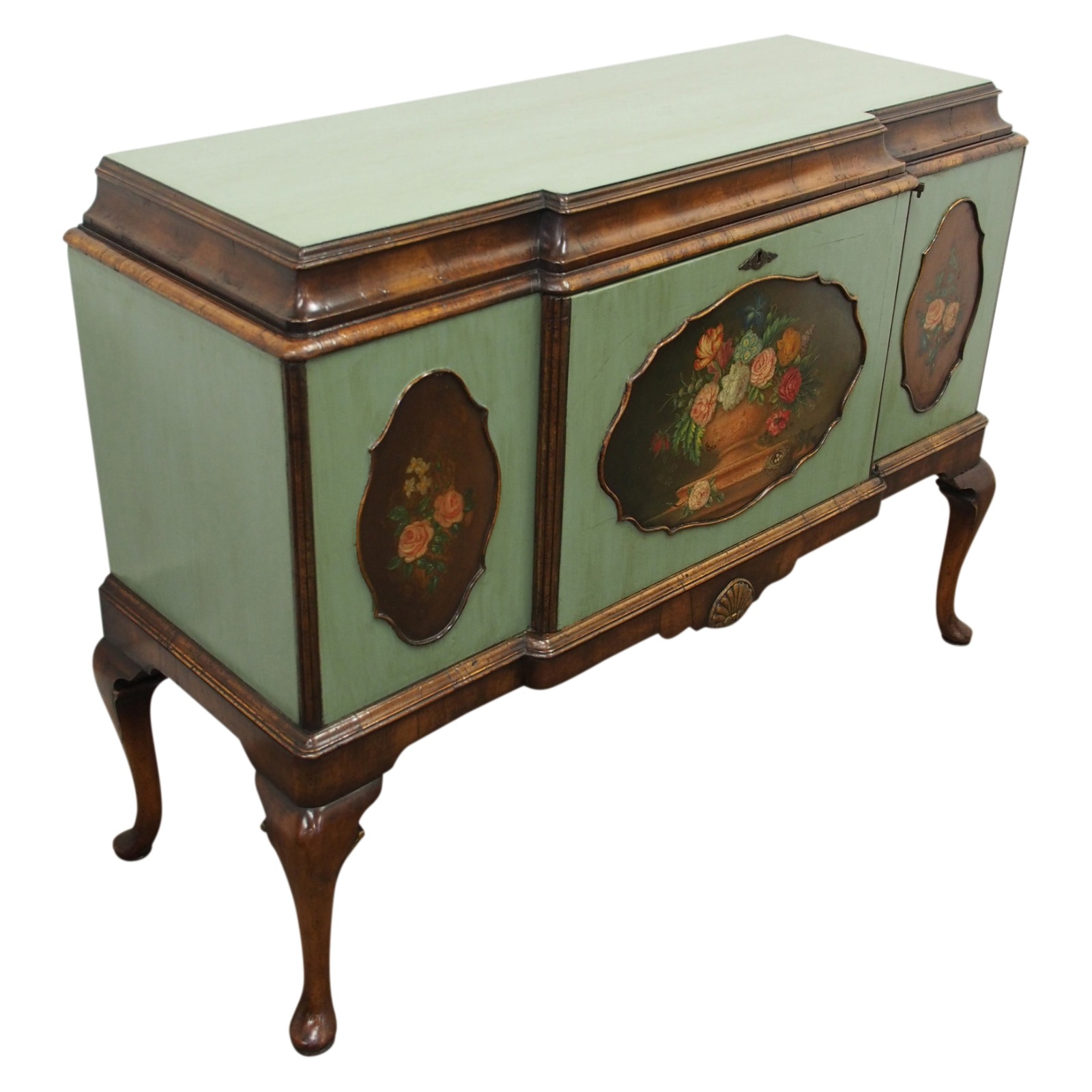 Queen Anne Style Walnut & Painted Sideboard c.1900