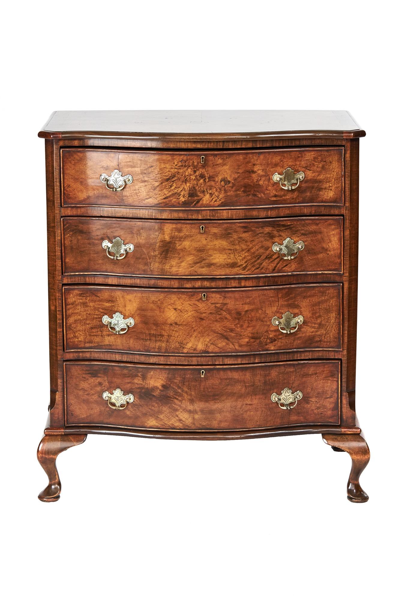 Queen Anne Style Walnut Serpentine 4 Drawer Chest c.1920