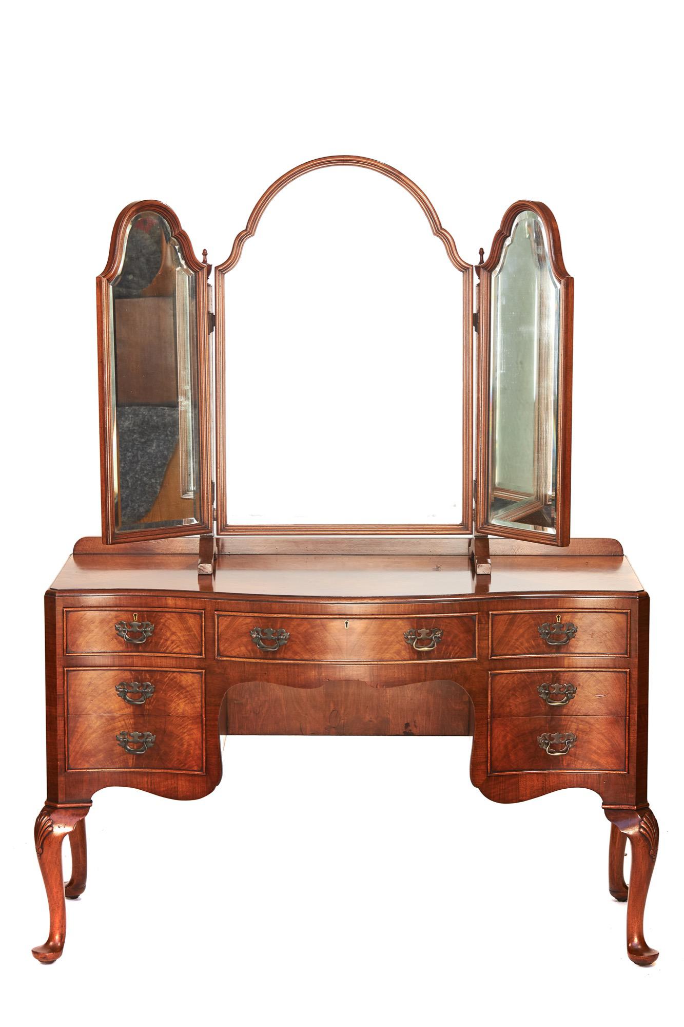 Queen Anne Style Walnut Serpentine Dressing Table with Triple Mirror (1 of 7)