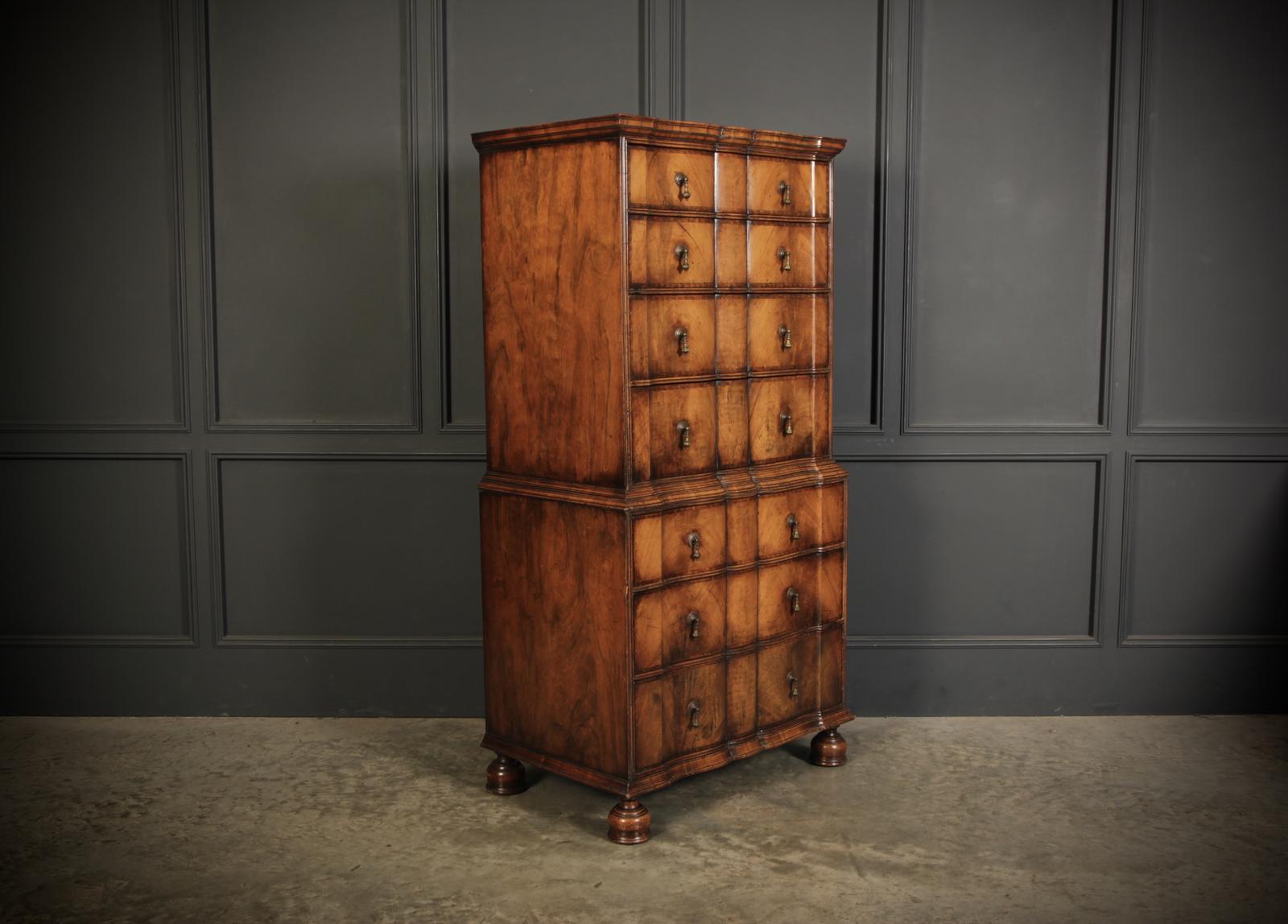 Queen Anne Style Walnut Shaped Chest on Chest