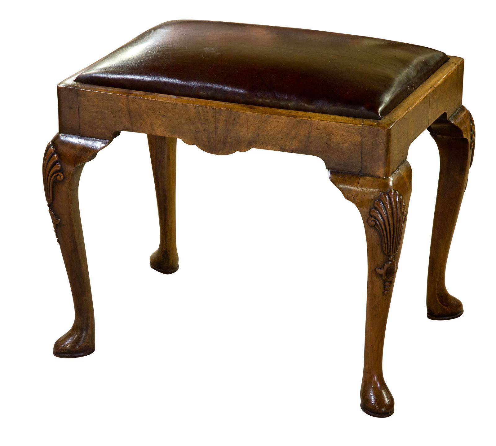 Queen Anne Style Walnut Stool with Burgundy Leather Seat
