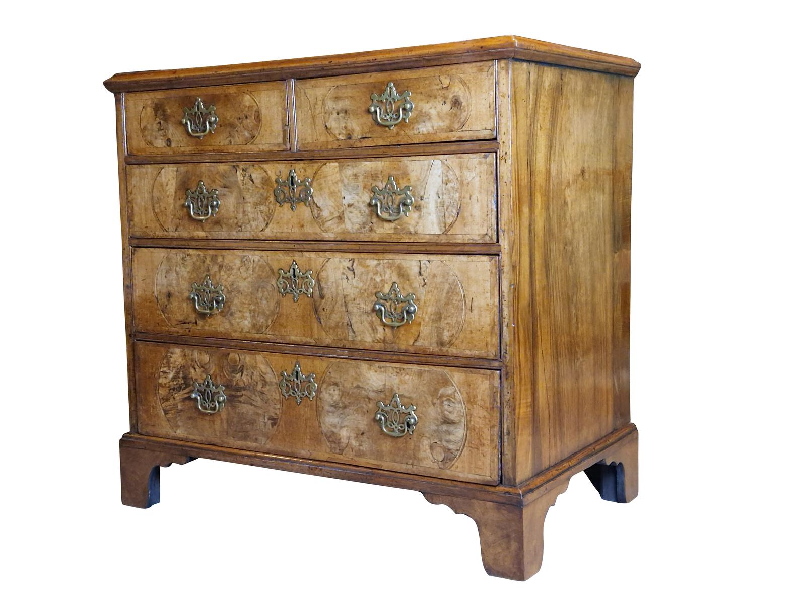 Queen Anne Walnut & Feather Banded Chest of Drawers (1 of 6)