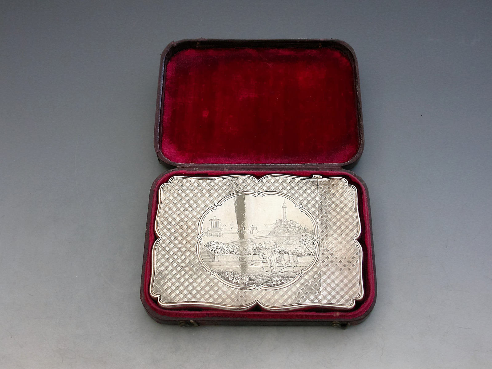 Queen Victoria on Horseback Calton Hill Edinburgh Silver Card Case by Nathaniel Mills, Birmingham 1842