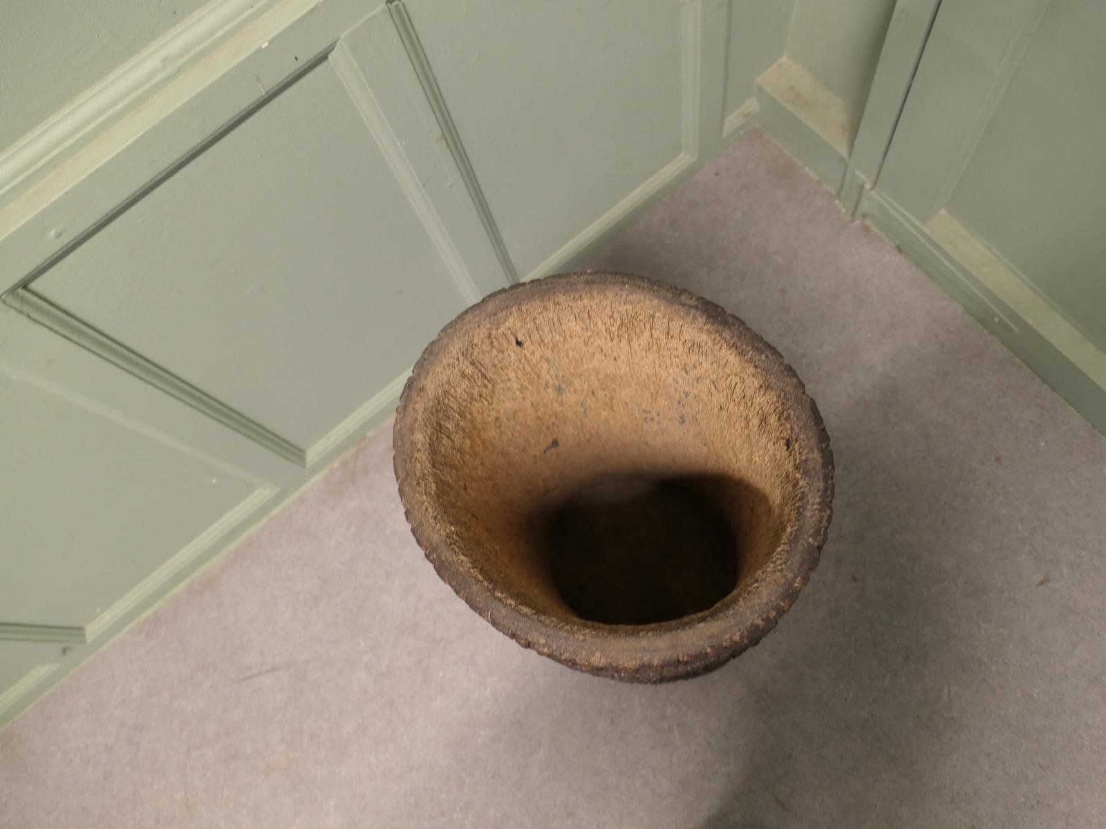 This is a very old piece, it had been made by hollowing out a tree trunk, I am not sure of exactly which tree it is from but it has the look of something from the southern hemisphere, a palm of some kind perhaps