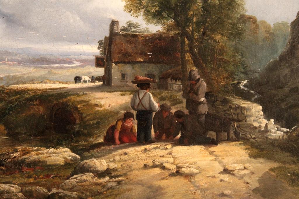 R B David 19th Century 'Figures on a Bridge' Oil on Canvas