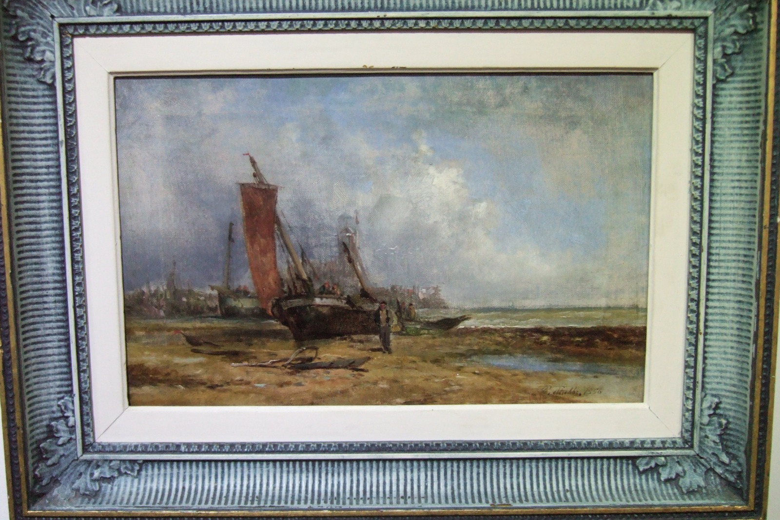 Ralph Reuben Stubbs Oil on Canvas of Beached Fishing Vessels, Probably Yorkshire (1 of 1)