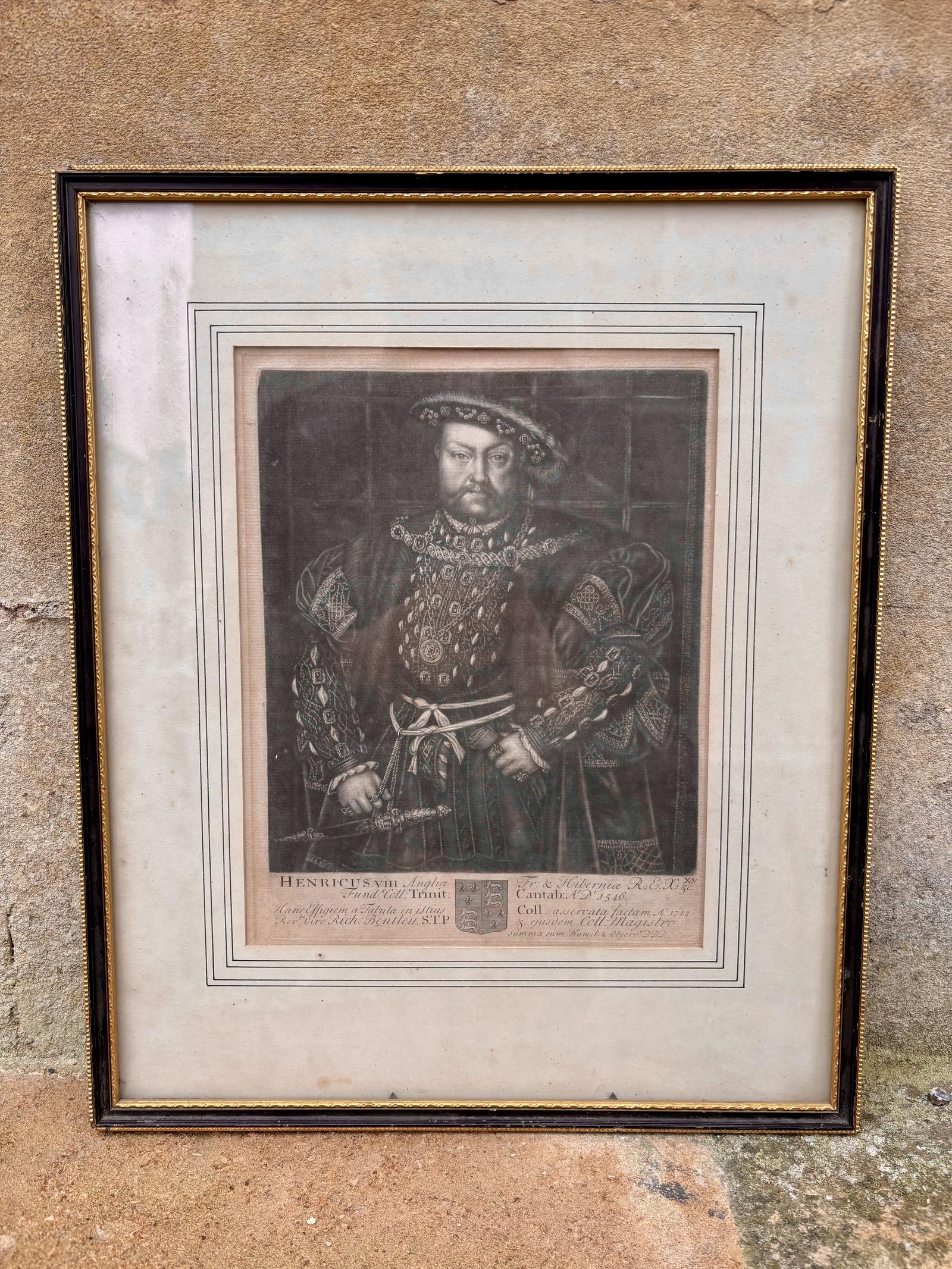 Rare 1714 Mezzotint Portrait of Henry VIII – John Faber the Elder after Holbein – Early Georgian