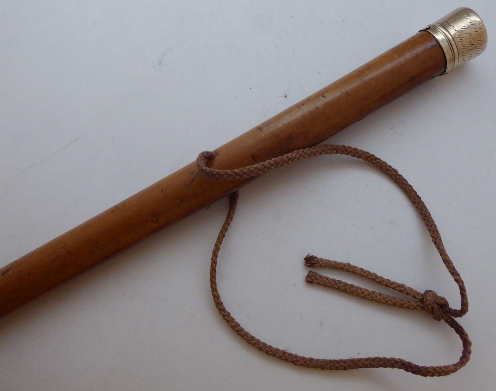 Rare 1716 Georgian Memorial Walking Stick Cane Gold Plated Malacca Shaft Scottish