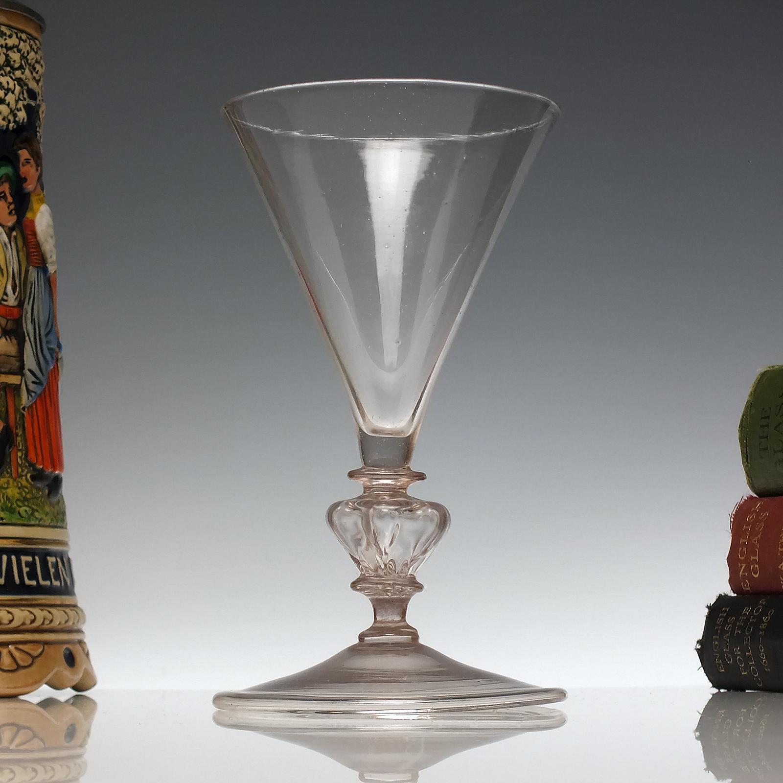 Rare 17th Century Facon De Venise Hexafoil Knop Wine Glass c.1670