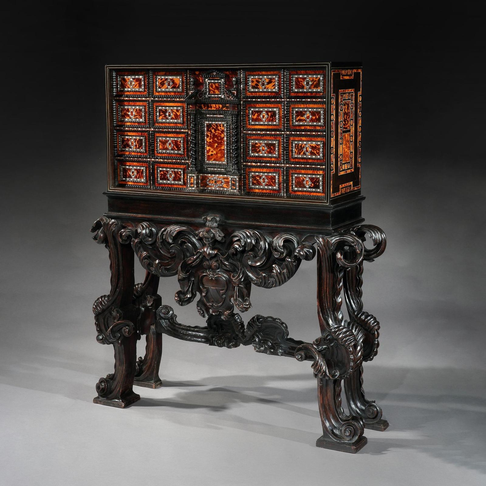 Rare 17th Century Neapolitan Ebony Tortoiseshell and Mother of Pearl Cabinet on Stand (1 of 6)