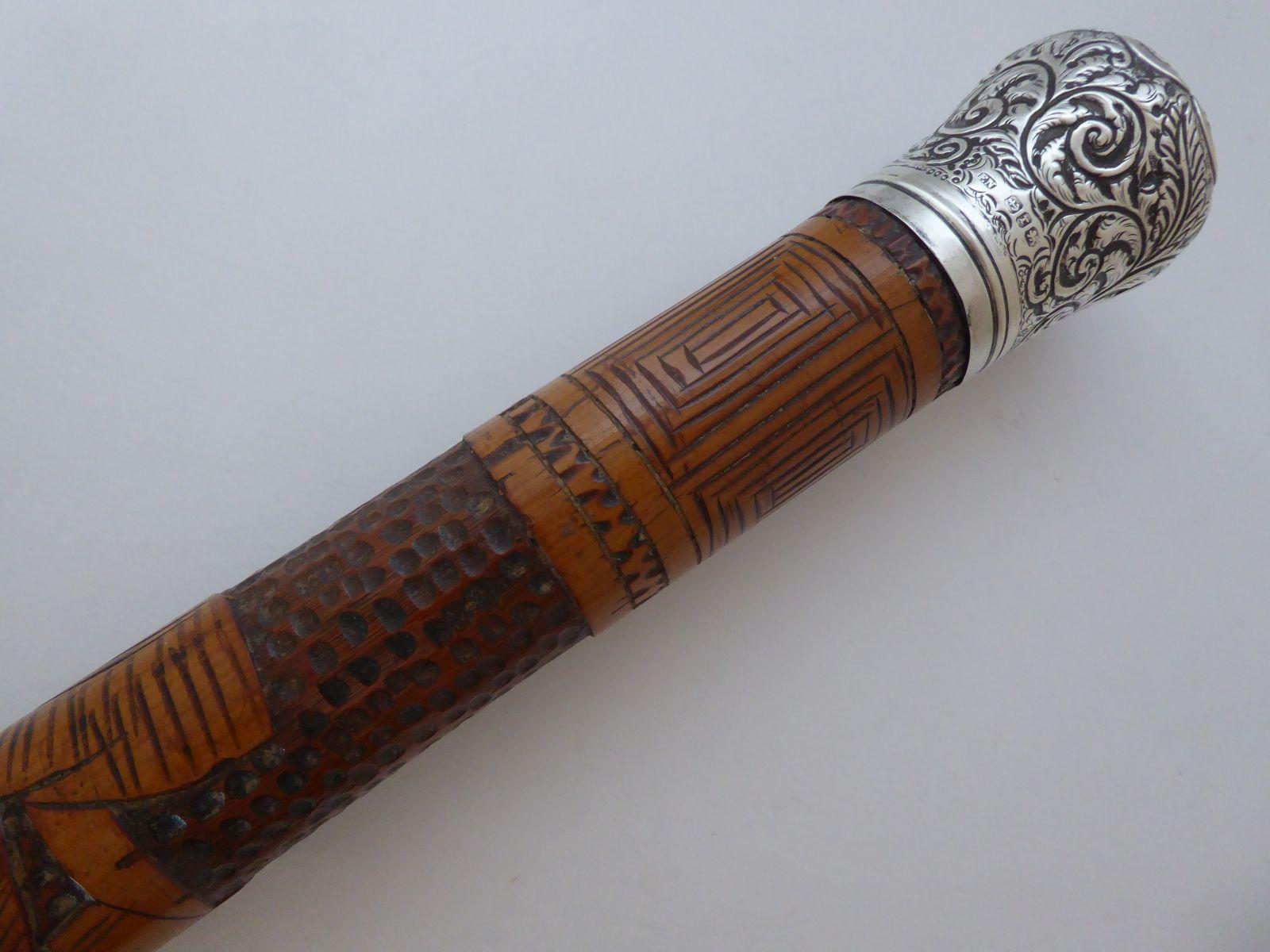 Rare 1891 Shinai Japanese Walking Stick Cane Hallmarked Solid Silver Pommel