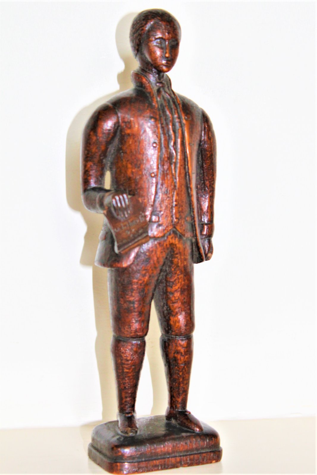 Rare 18th Century Carving in Oak of Patrick Henry the American Revolutionary Who Famously Said Give Me Liberty or Give Me Death in His Right Hand There is a Scroll Stating the Same with a Rich Deep Patina American c.1780