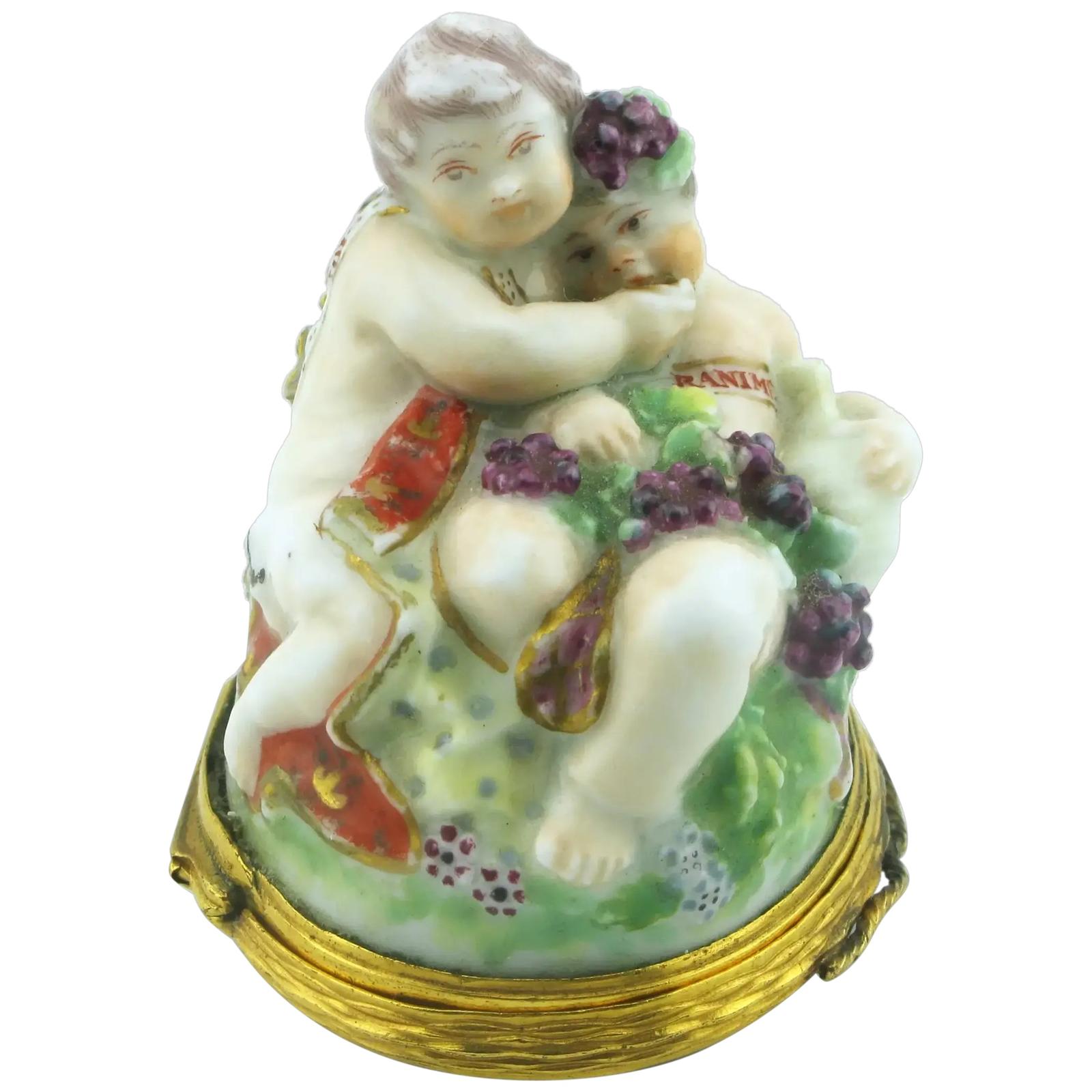 Rare 18th Century Chelsea Porcelain Bonbonniere Cupid and Bacchus