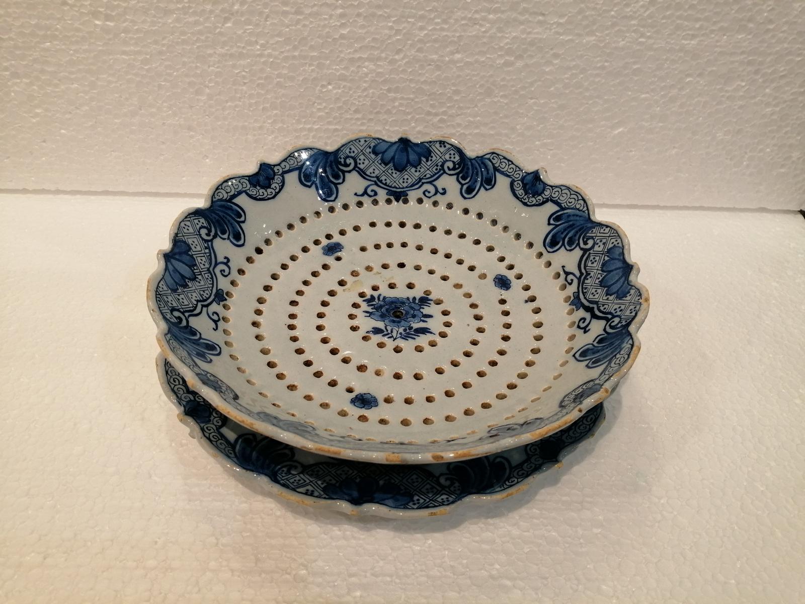 Rare 18th Century Dutch Delft Strainer & Stand