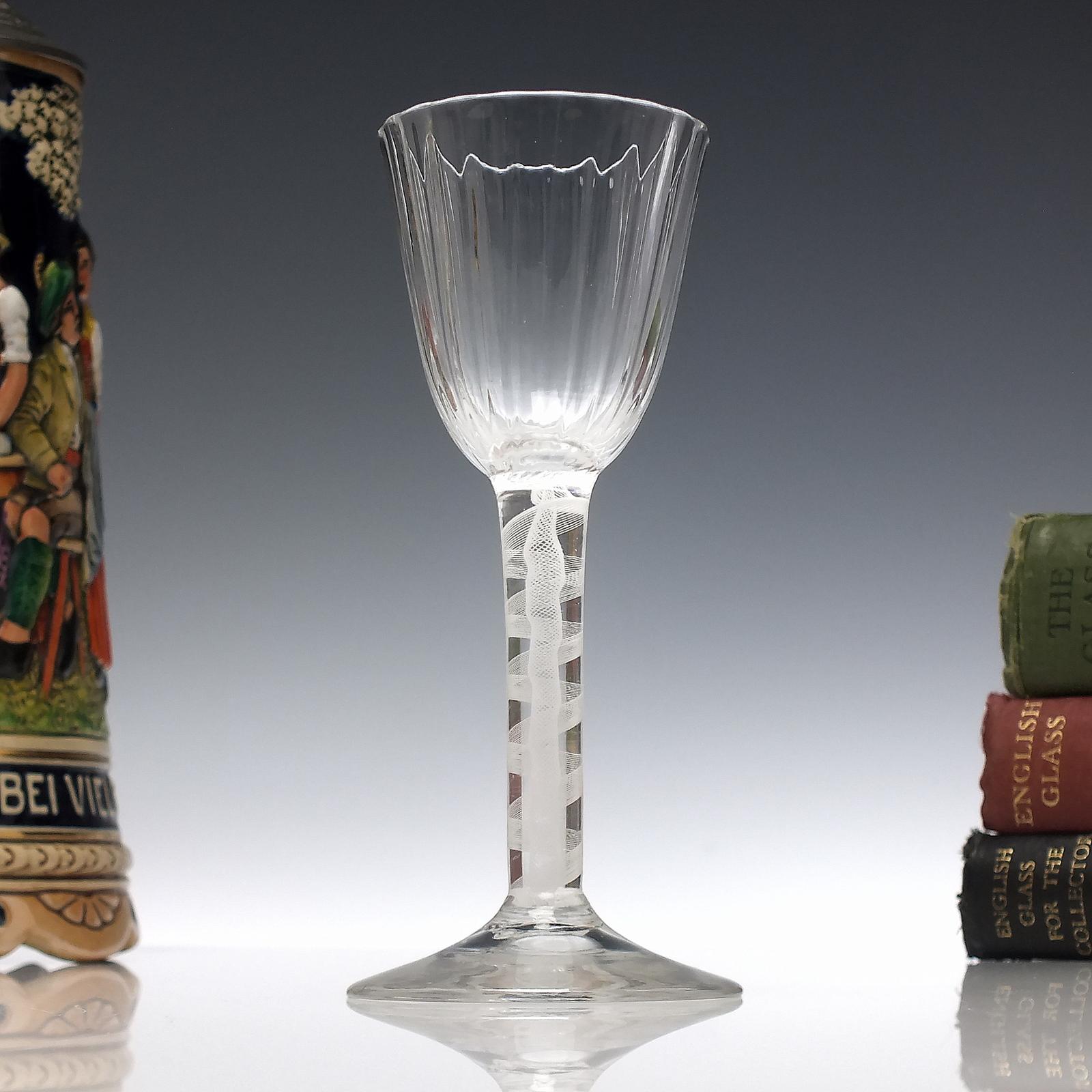 Rare 18th Century Ribbed Bowl Opaque Twist Wine Glass c.1760