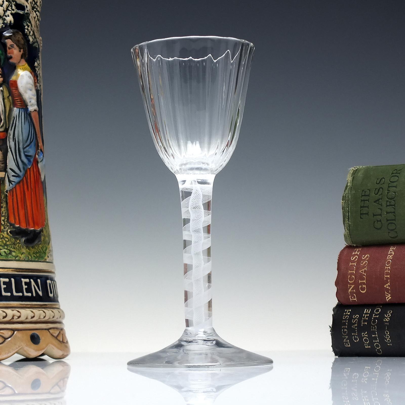 Rare 18th Century Ribbed Bowl Opaque Twist Wine Glass C1760