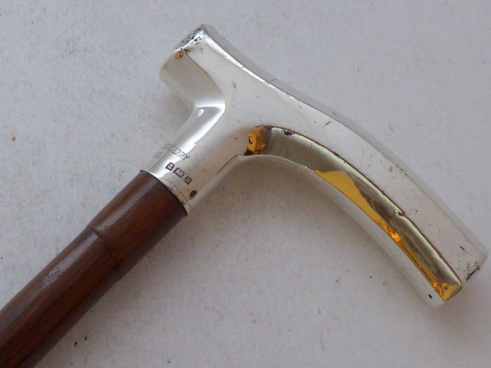 Rare 1901 Lady Londonderry Walking Stick Cane Hallmarked Solid Silver Pommel Partridge Wood Shaft