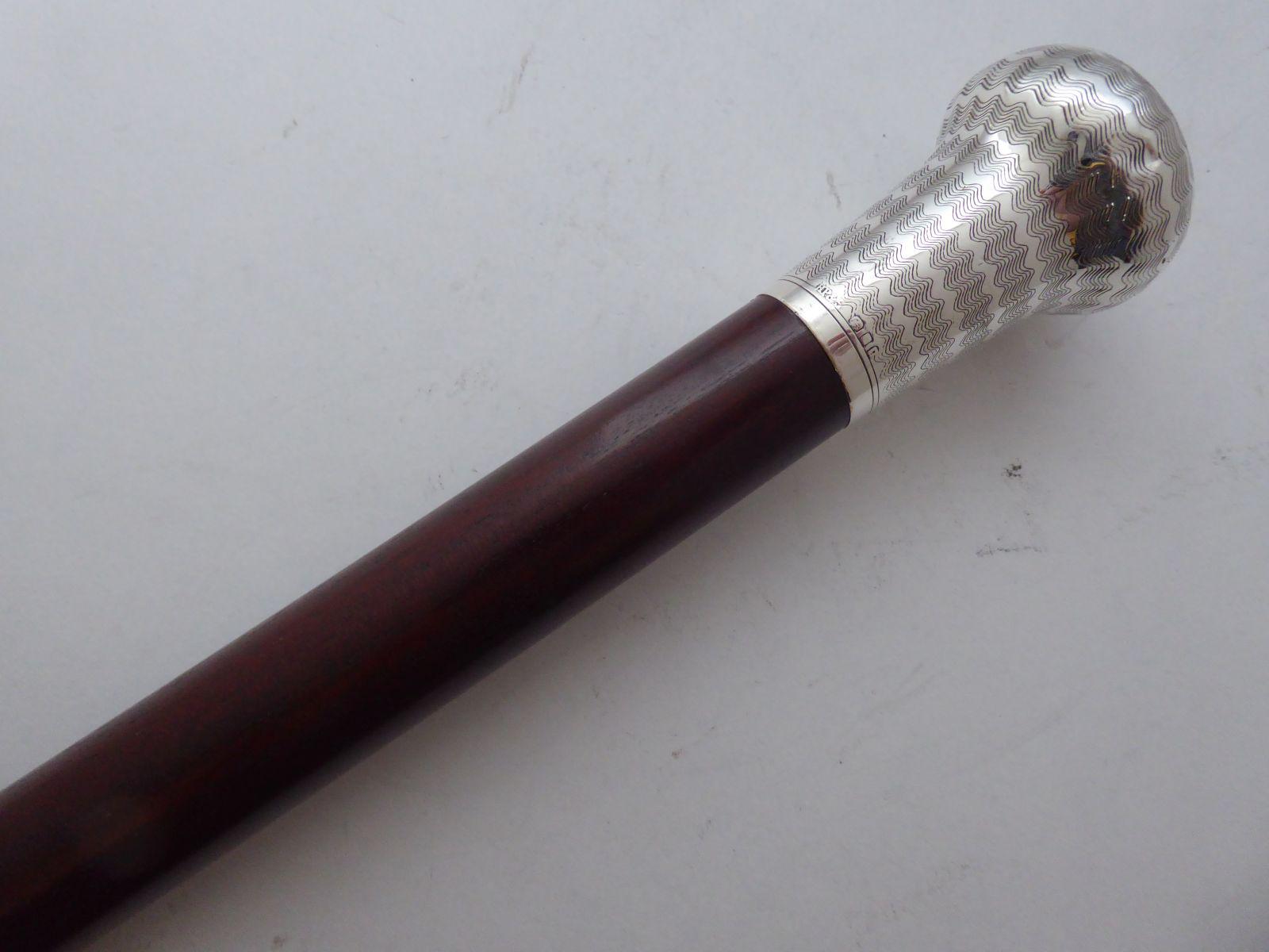 Rare 1906 Bailiff Walking Stick Cane Hallmarked Silver Pommel Mahogany Shaft