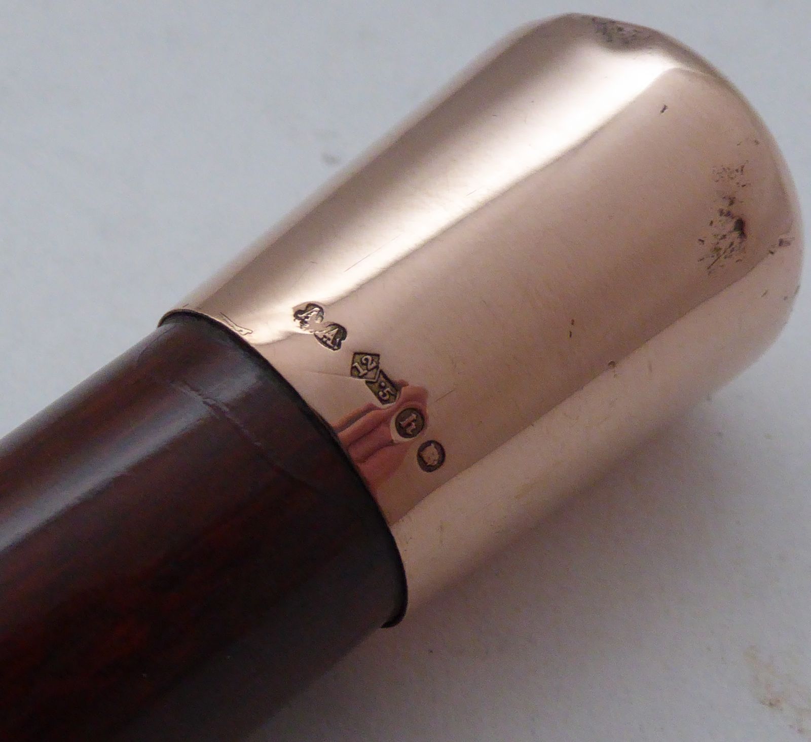 Rare 1925 12ct Rose Gold Walking Stick Cane Hallmarked Snake Wood