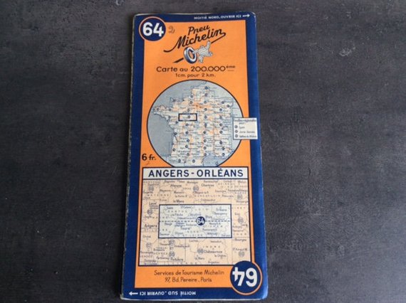 Rare 1938 Vintage French Michelin 1cm to 2km Road Map Touring Map No 64 Angers - Orleans in Very Good Condition no Tears or Writing
