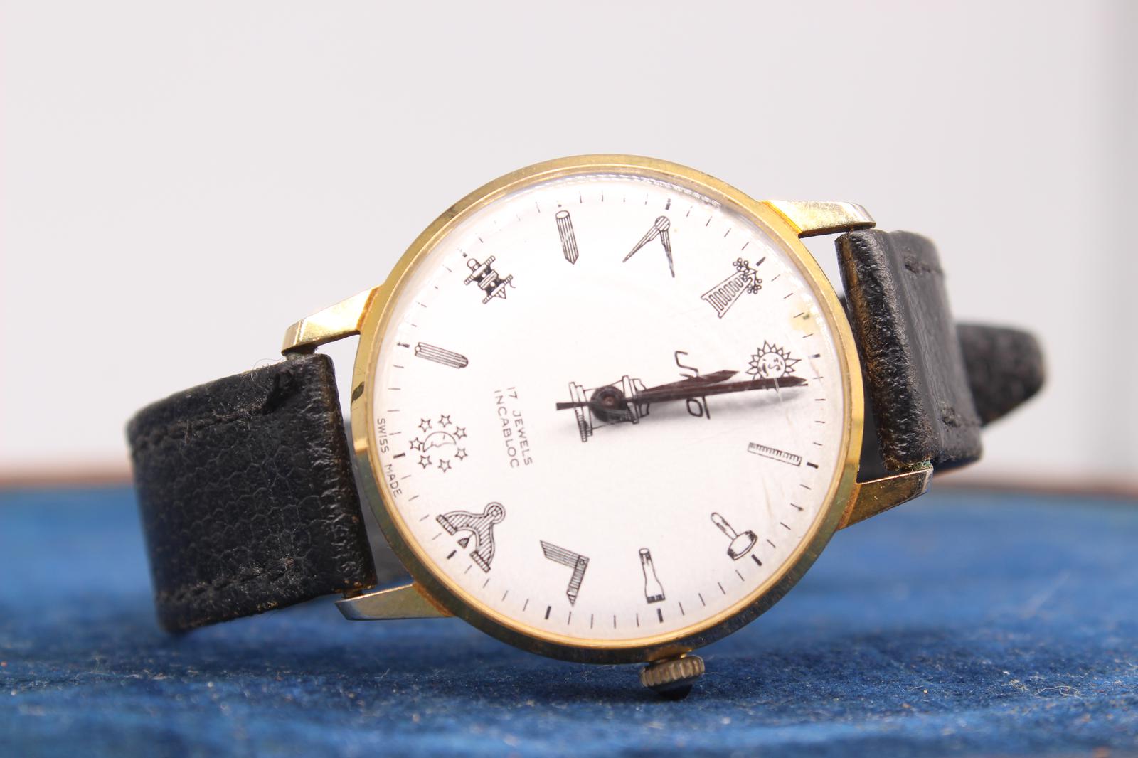 Rare 1970s Uno Masonic Watch with Associated Symbols as the Hours. Swiss Movement