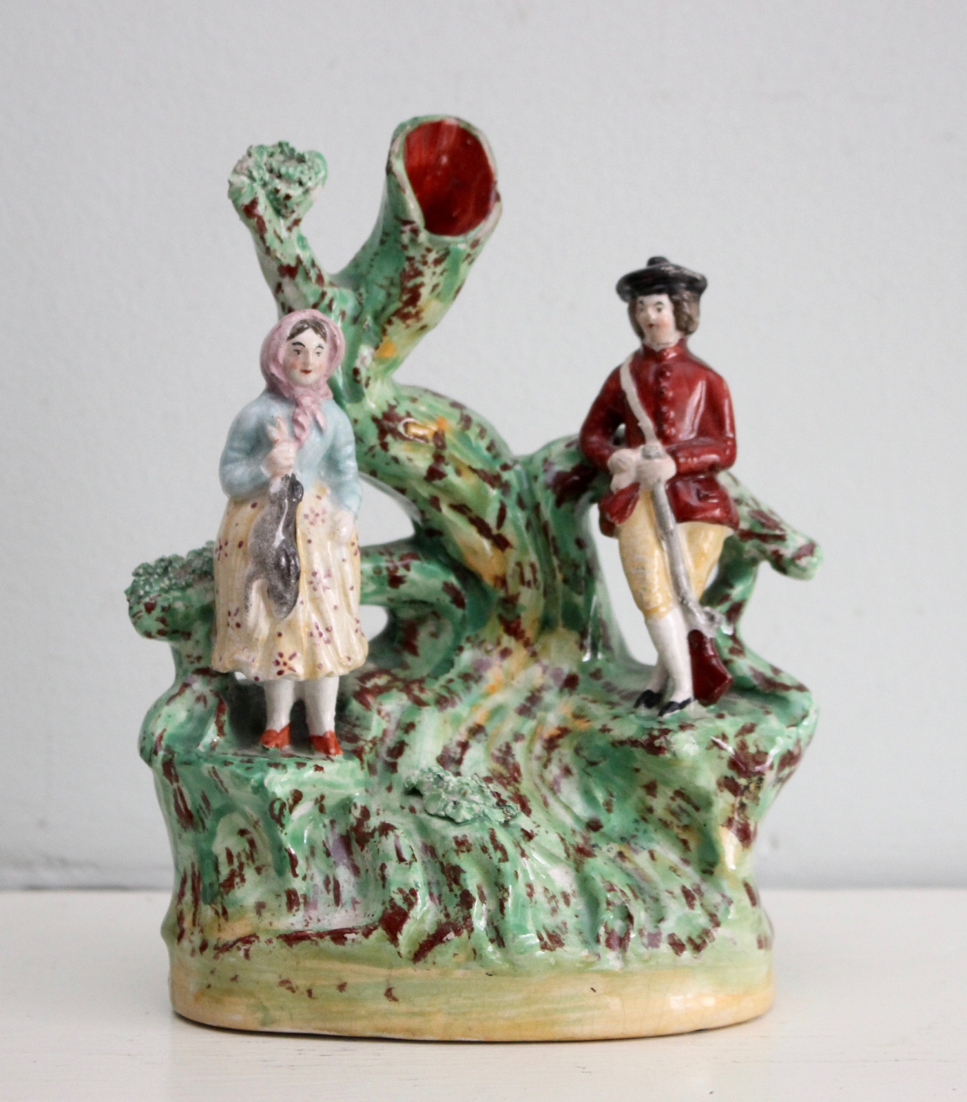 Rare 19th Century Antique Victorian Staffordshire Spill Vase, Game Keeper & His Wife