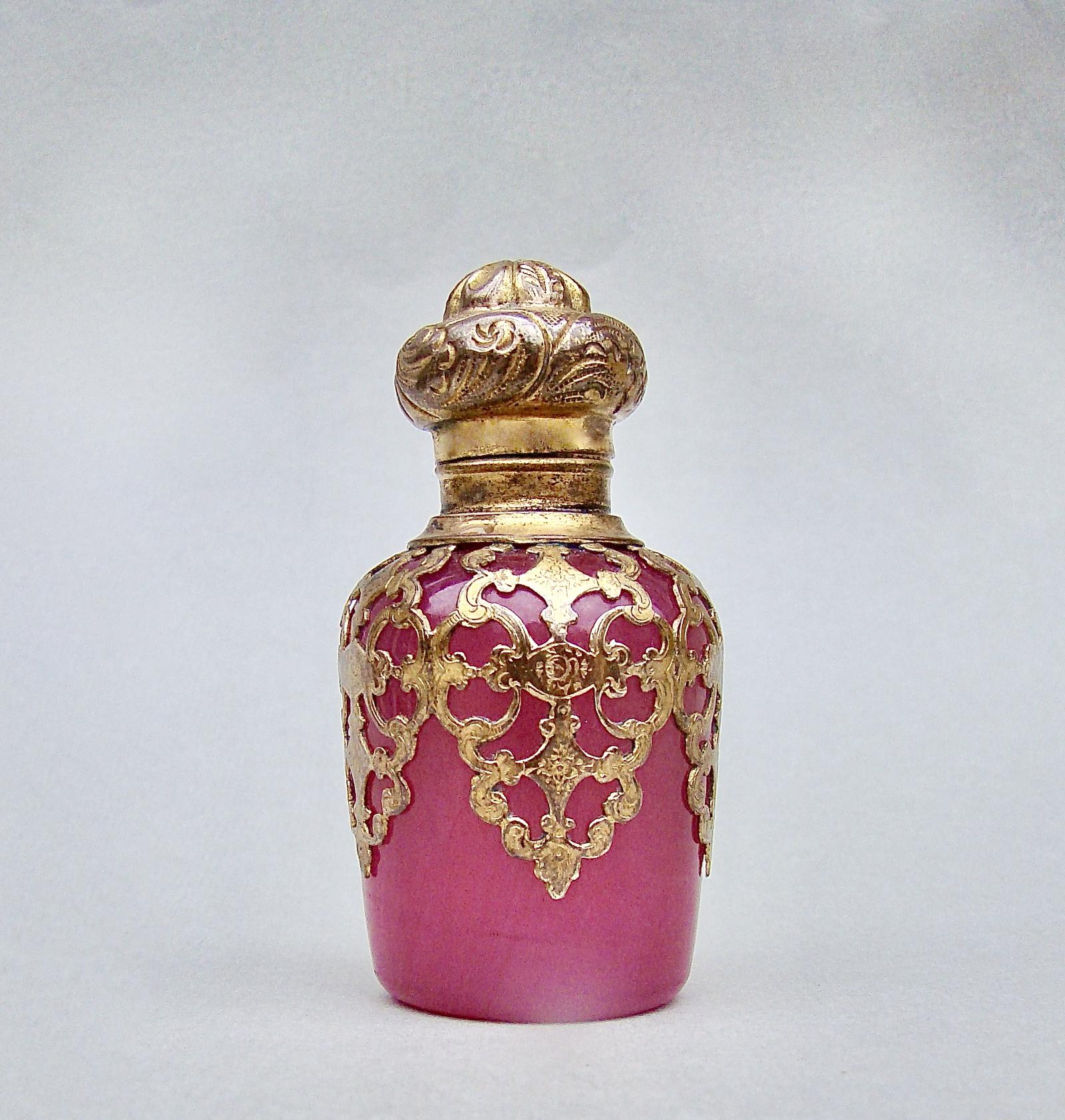 Rare 19th Century French Palais Royal Ormolu & Pink Opaline Glass Scent Bottle c.1880