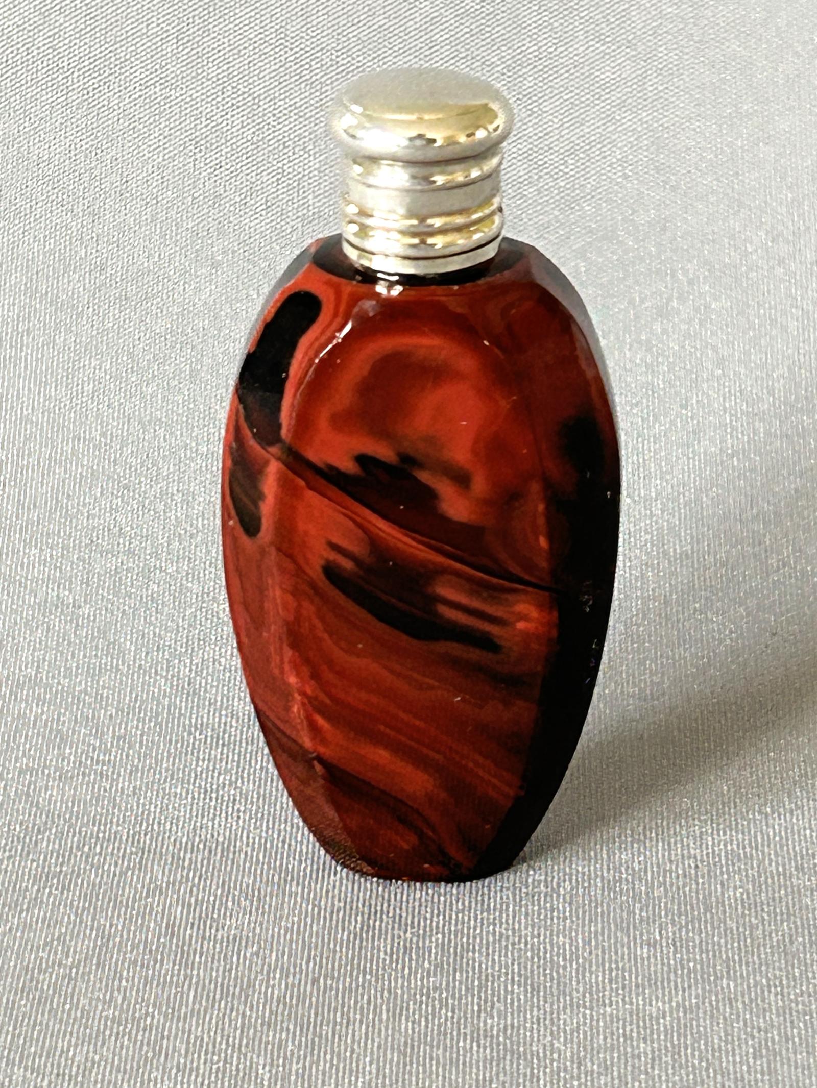 Rare 19th Century Lithyalin Silver Mounted Scent Bottle