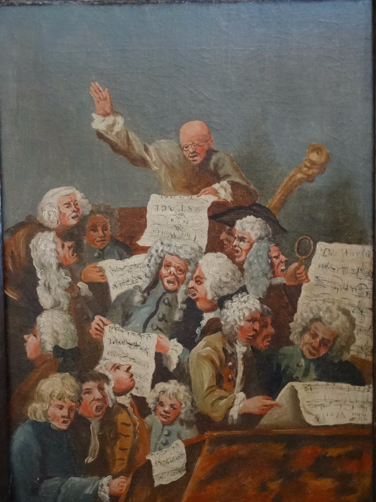 Rare 19th Century Maestro & Musicians Oil Painting of 'All The World's a Stage'
