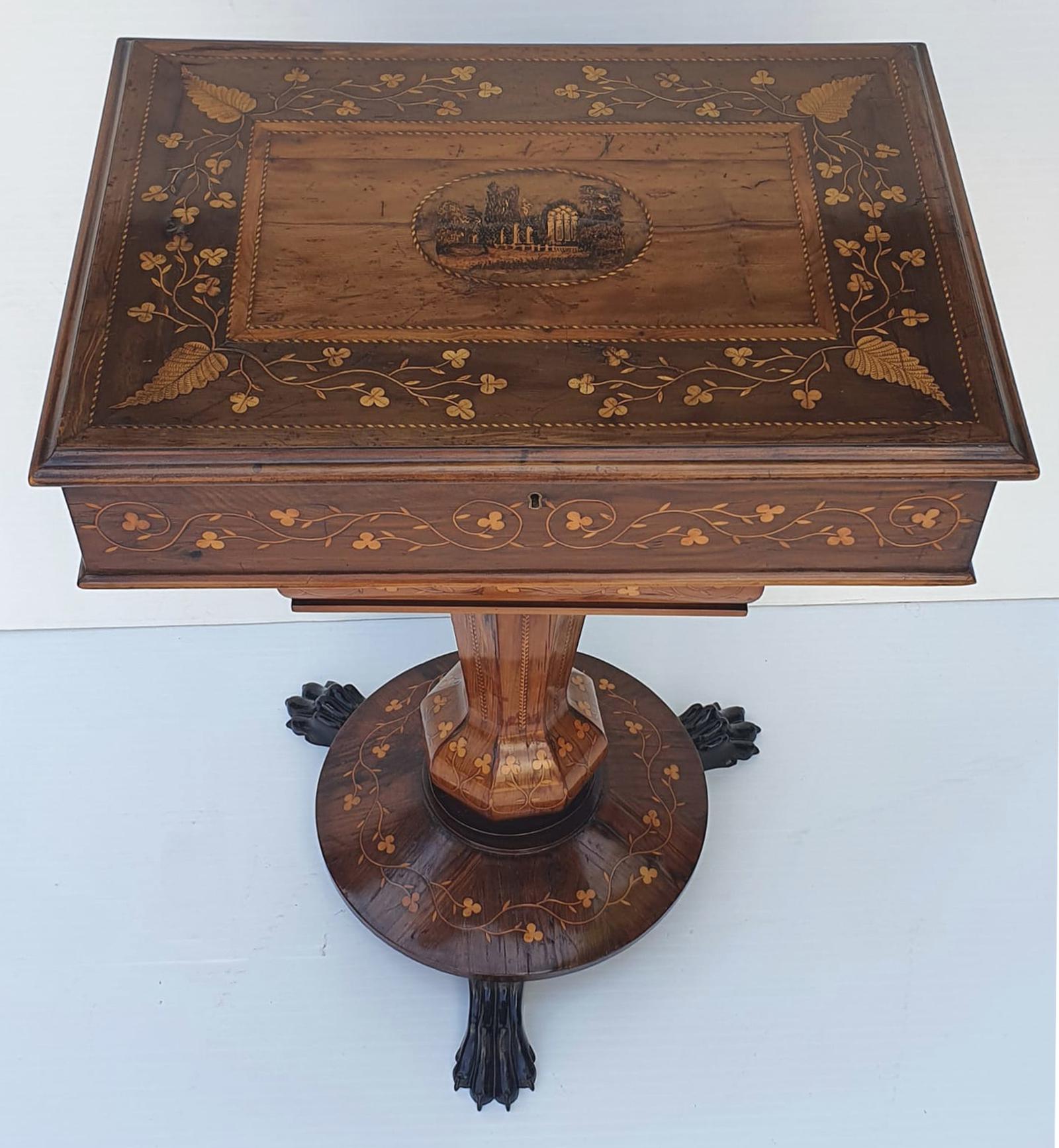 Rare 19th Century Marquetry Inlaid Irish Killarney Work Box or Table