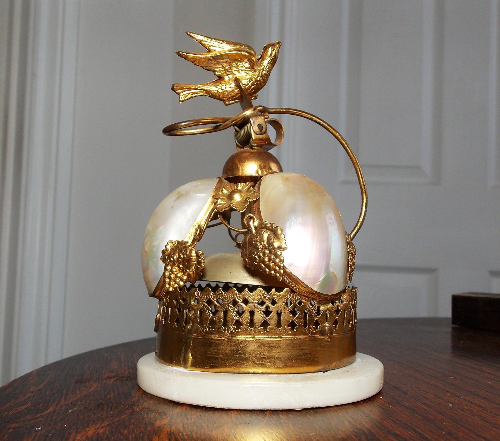 Rare 19th Century Palais Royal Gilt Dove Bird & Mother of Pearl Bell