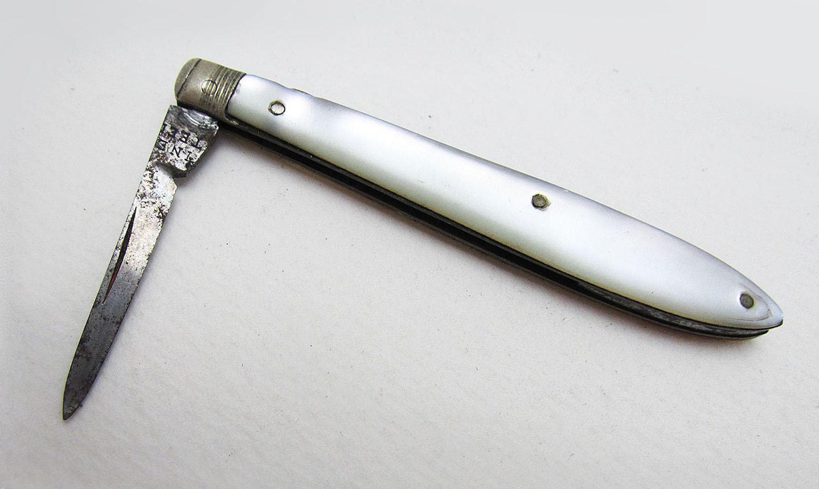 Rare 19th Century Quill Cutter English Sheffield Mother of Pearl Mop Pocket Folding Knife Penknife Pencil Sharpener c.1840