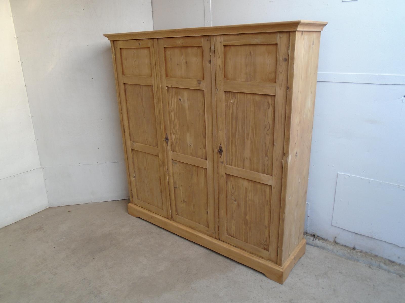 Rare 3 Door 1 Piece Victorian Antique Pine Hall Cupboard to wax / paint