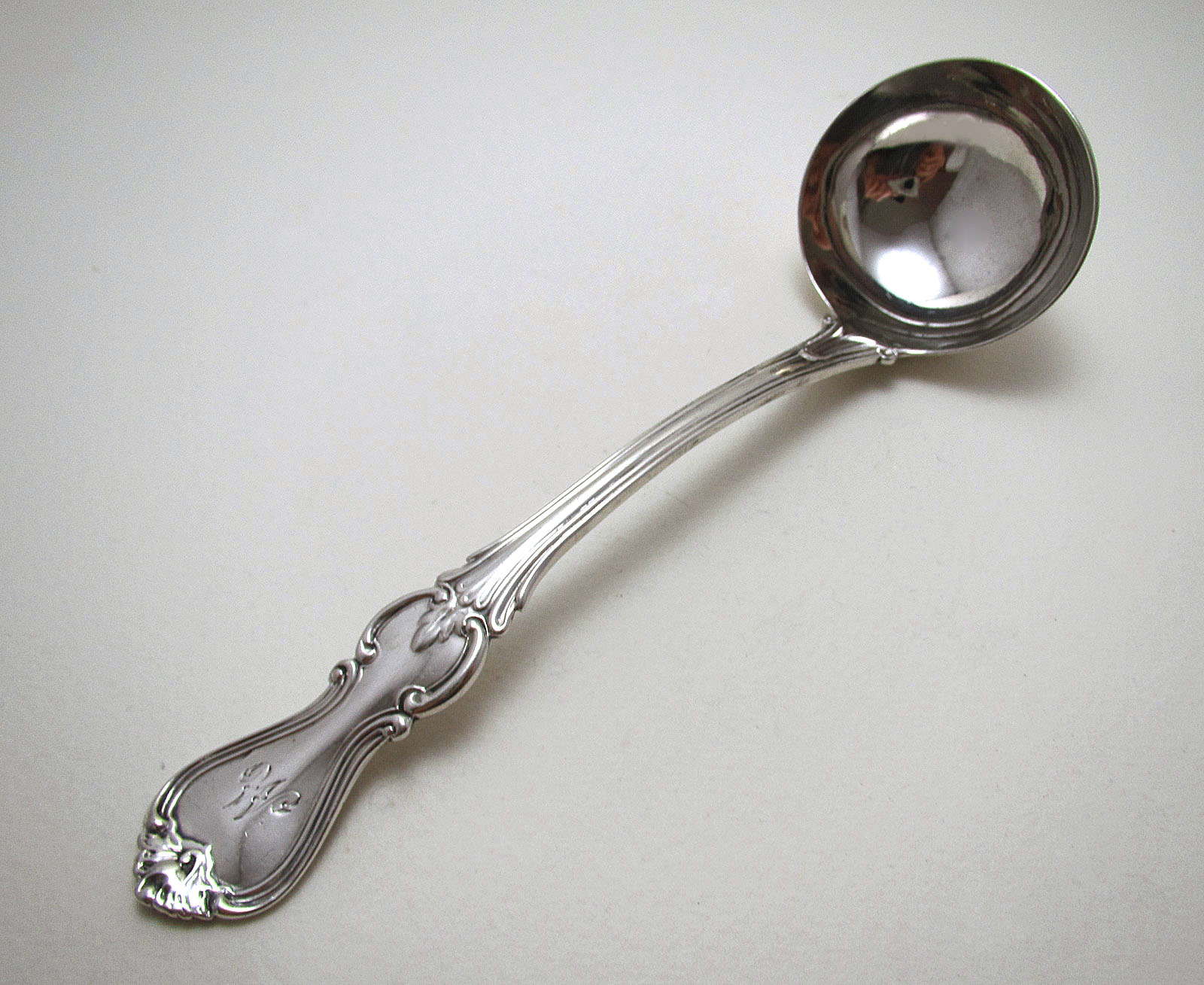 Rare 'Albert' Pattern Victorian Antique Solid Sterling Silver Sauce / Toddy Ladle. Monogram M. Kings/Shell. Scottish Glasgow Hallmarked
