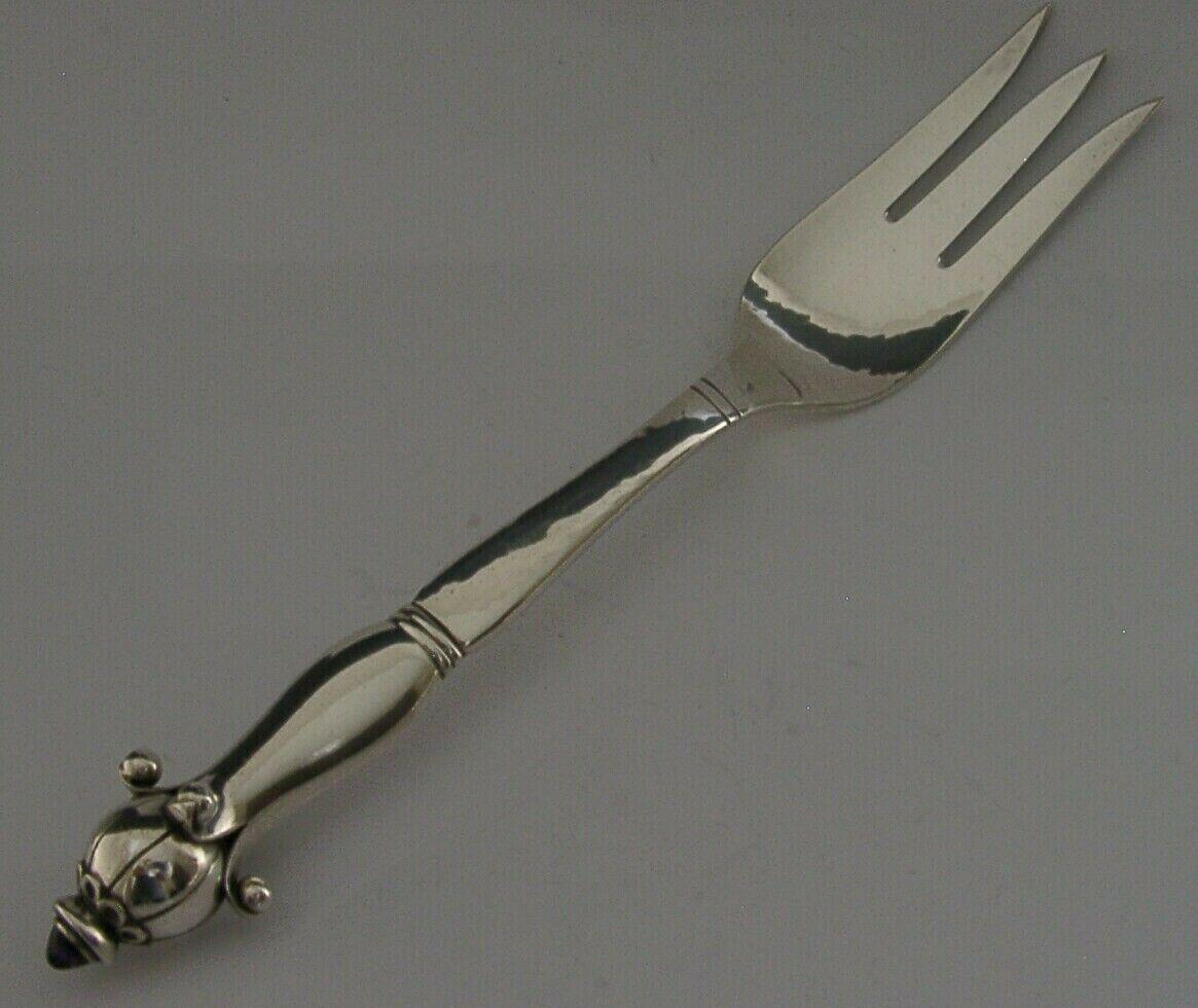 Rare Amethyst Danish 830 Solid Silver Serving Fork Antique Evald Nielsen