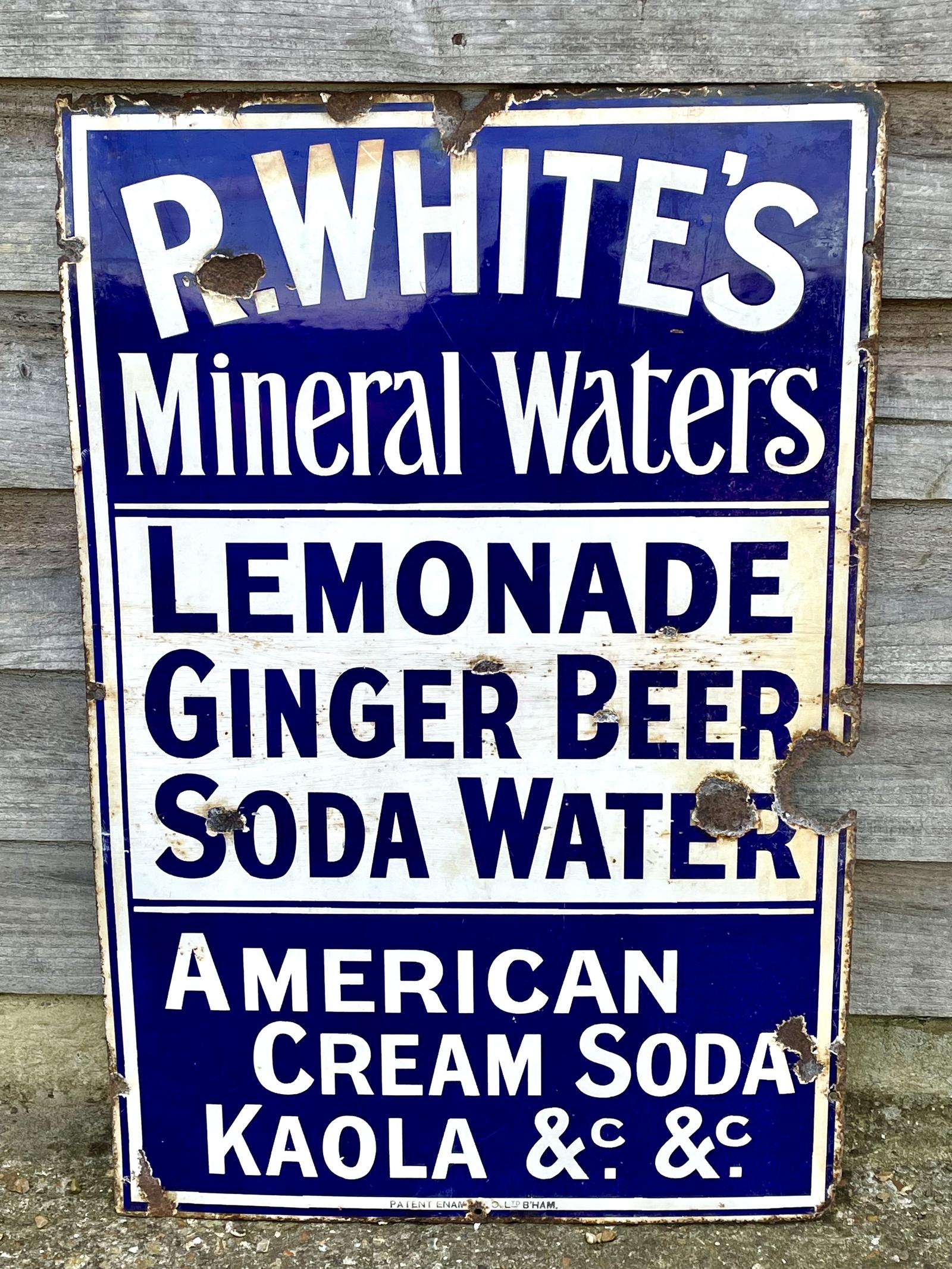 Rare and Early R Whites Lemonade Blue & White Enamel Advertising Sign