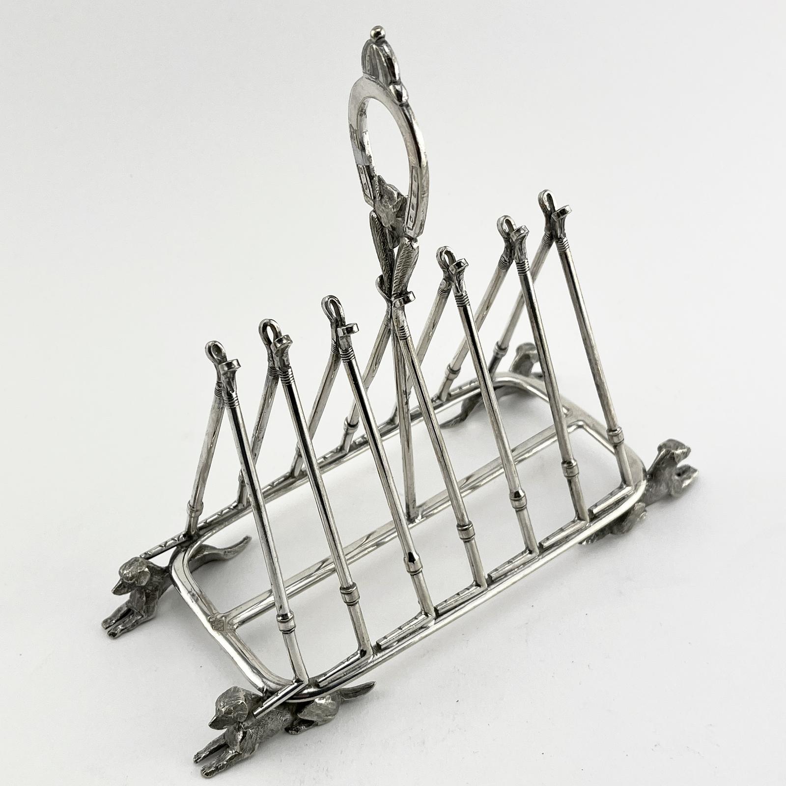 Rare and Unusual Victorian Hunting Themed Silver Plated Toast Rack (1 of 7)