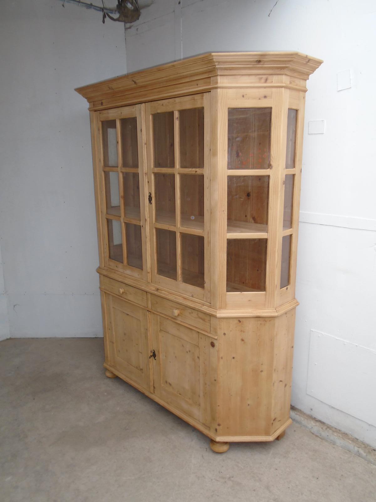 Rare Angled Antique Pine Kitchen Dresser / Display Cabinet to wax / paint