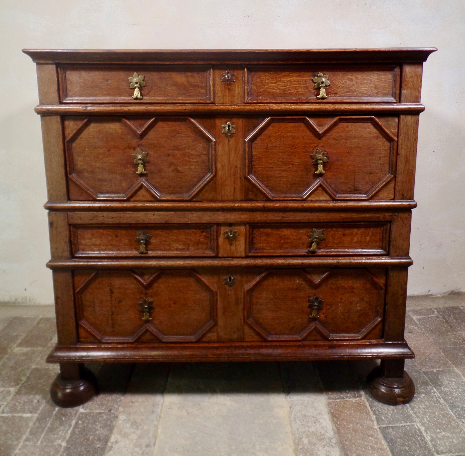 Rare Antique 17th Century Oak Two Part Chest of Drawers Carved Moulded (1 of 1)