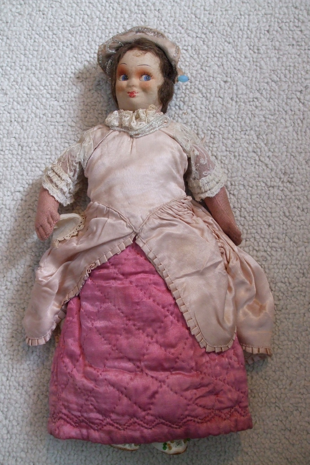 Rare Antique Apprentice Piece Costume Fabric Doll - All Hand Stitched