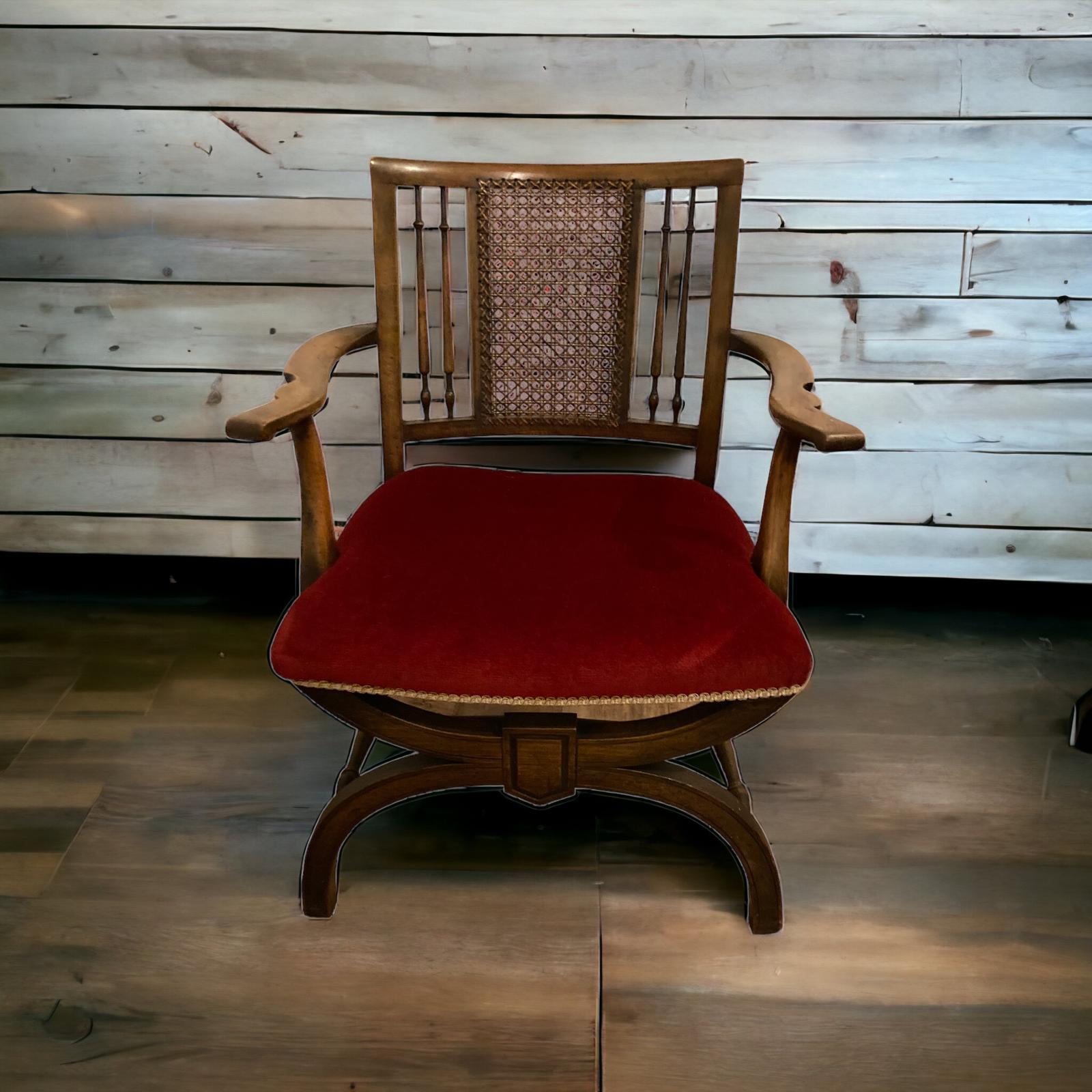 Rare Antique Beech Wood X Framed Cane Back Armchair