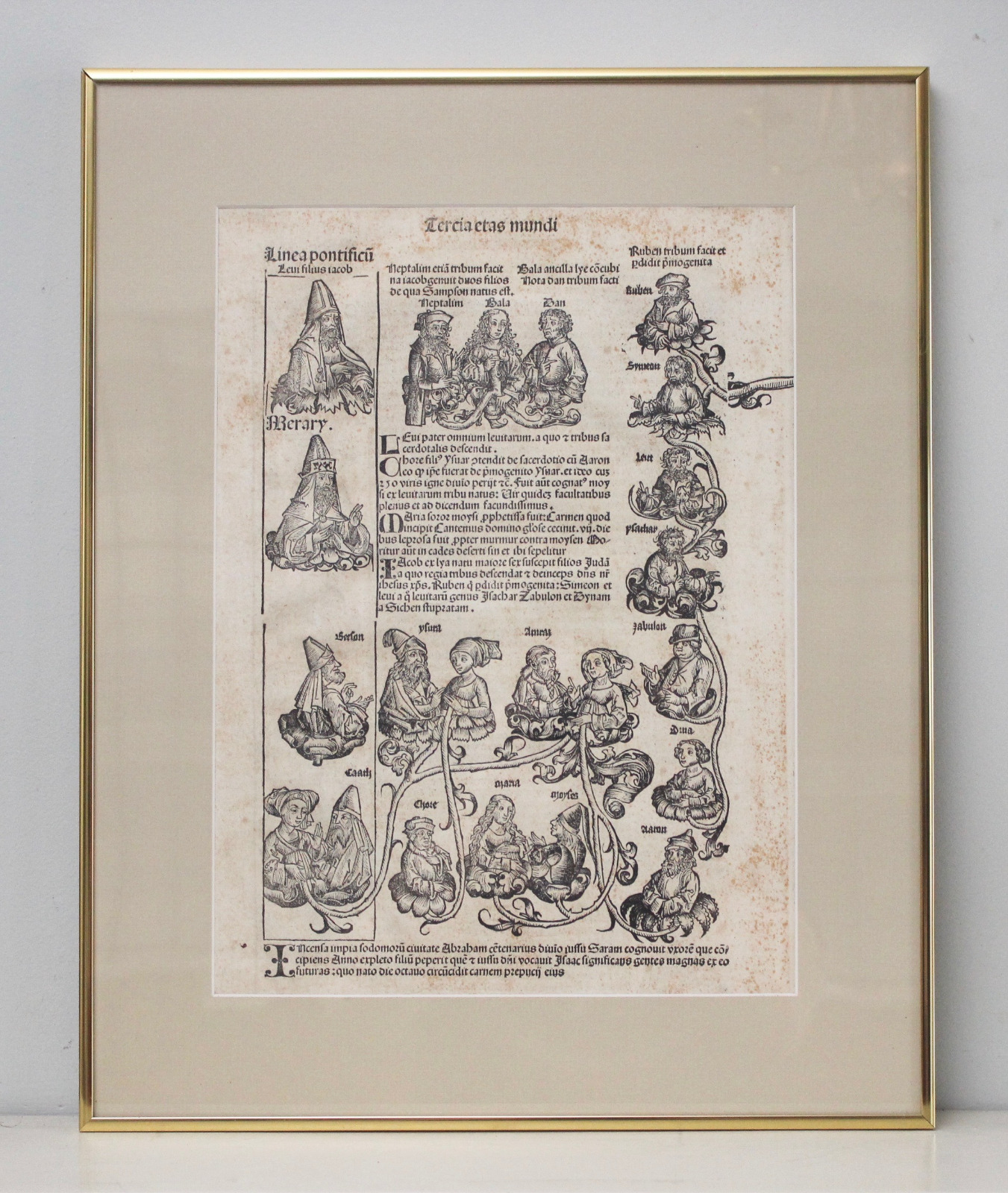 Rare Antique C15th Nuremberg Chronicle Leaf, Tercia Etas Mundi, C1493, Schedel