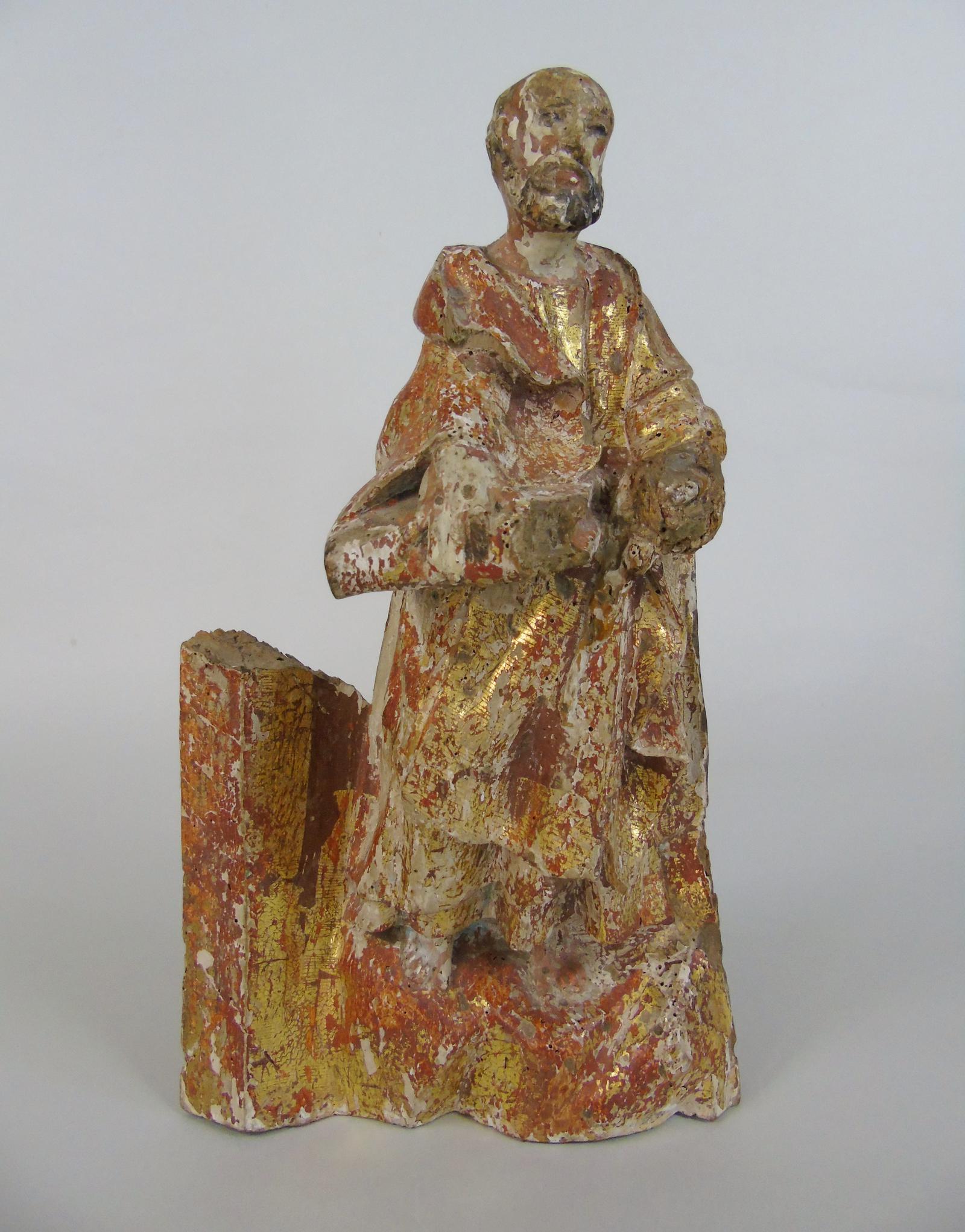 Rare Antique Carved Gilt & Polychrome Figure Saint Paul 17th Century