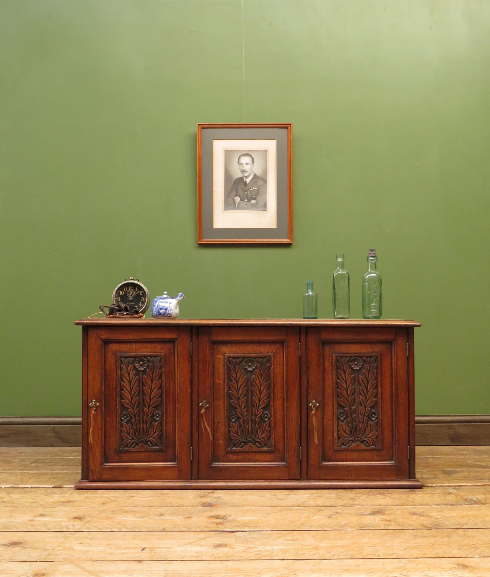Rare Antique Carved Oak Apothecary Cabinet, Doctors Medical Cabinet with Locks