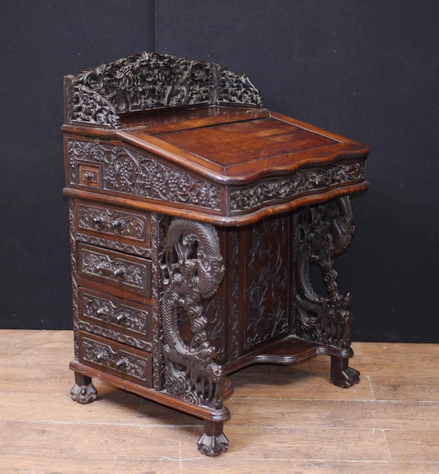 Rare Antique Chinese Davenport Desk Hand Carved Hardwood c.1860