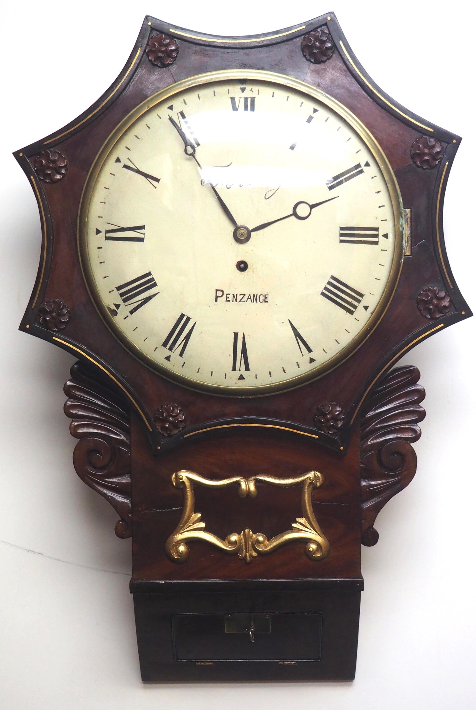Rare Antique Drop Dial Wall Clock 8 Day Single Fusee Movement Signed J H Harvey Penzance