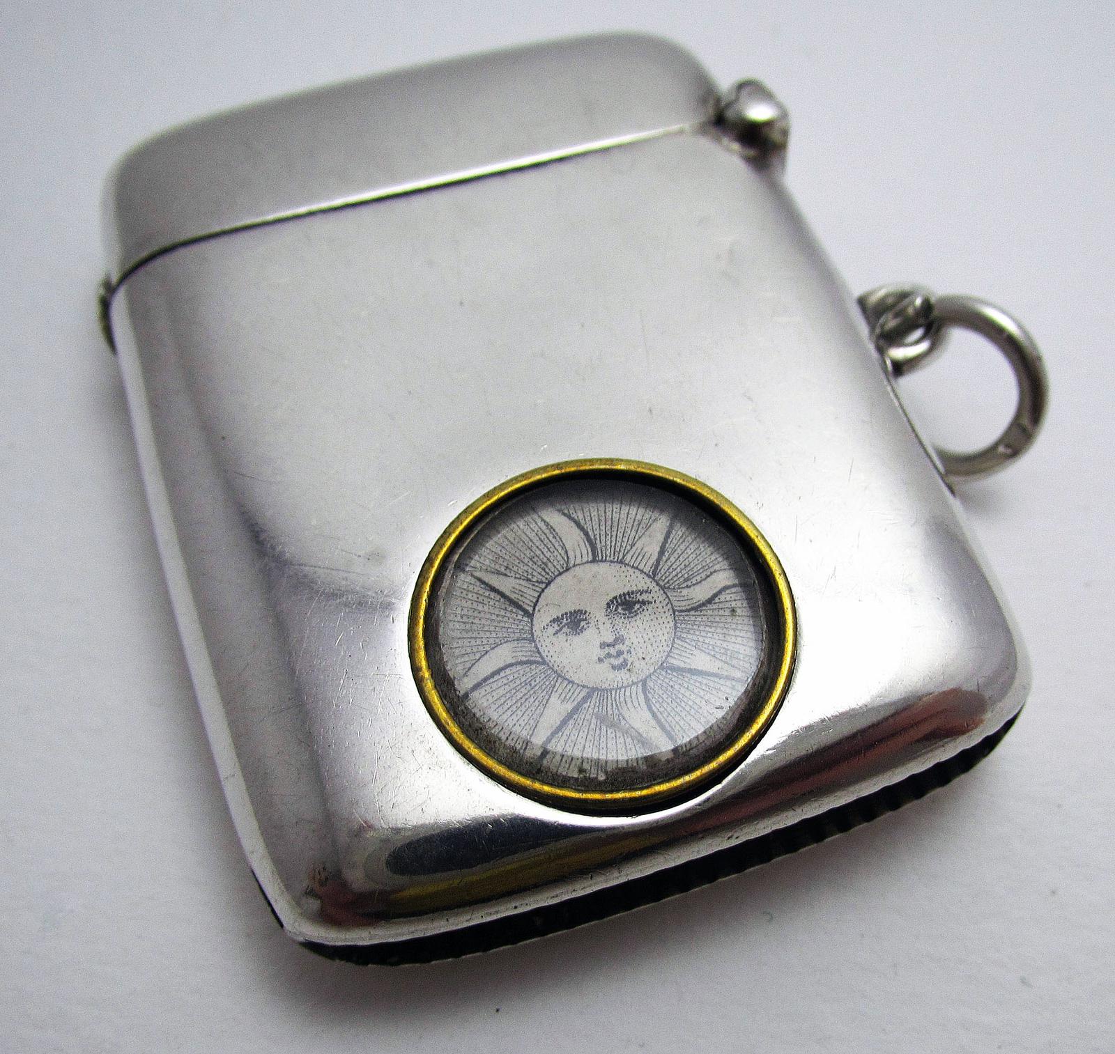 Rare Antique Edwardian 1903 Solid Sterling Silver English Vesta Case Match Box with Inset Photo Frame