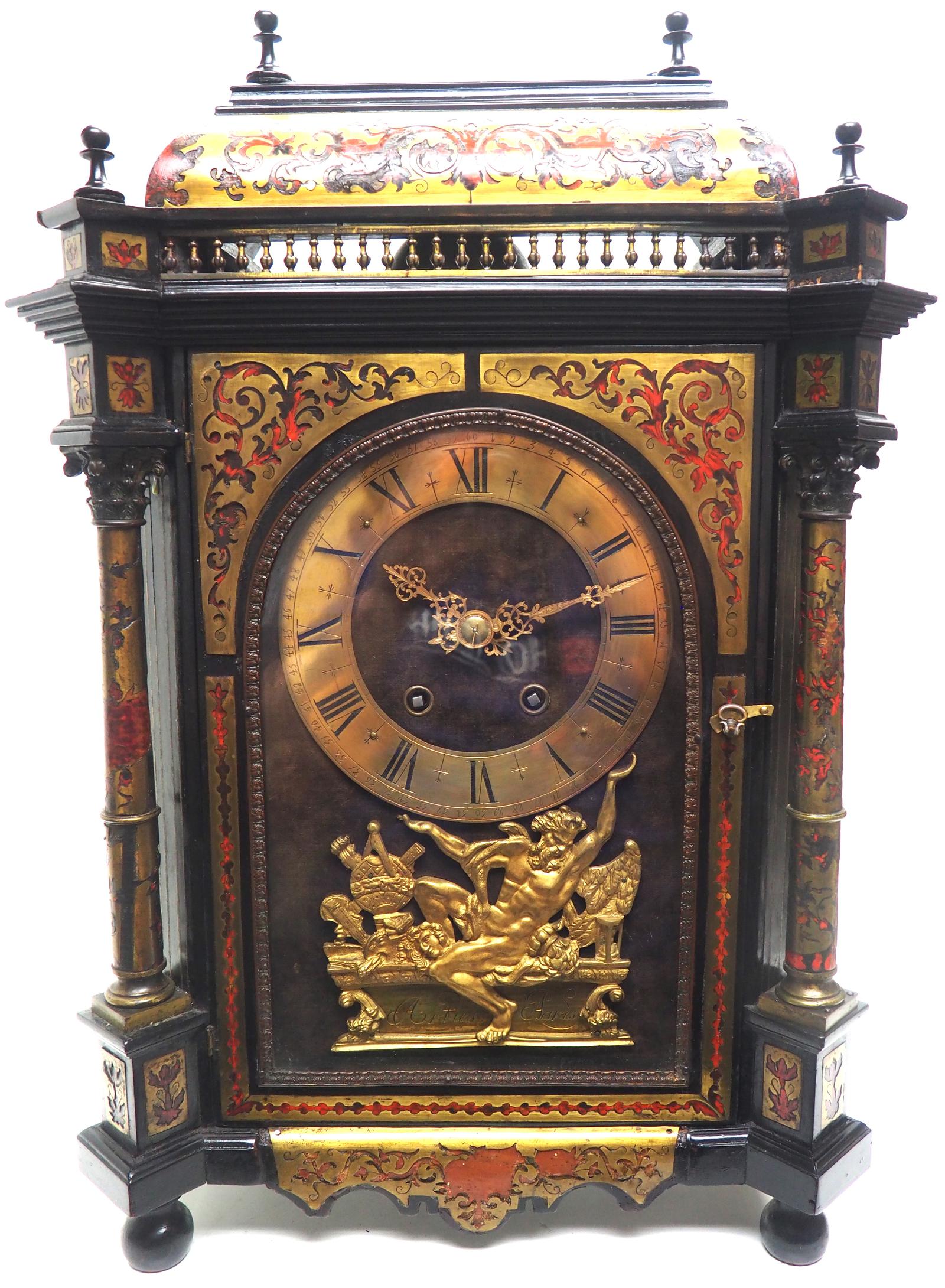 Rare Antique French Boulle Mantel Clock Ormolu Inlay 8 Day Gallery Top Mantle Clock