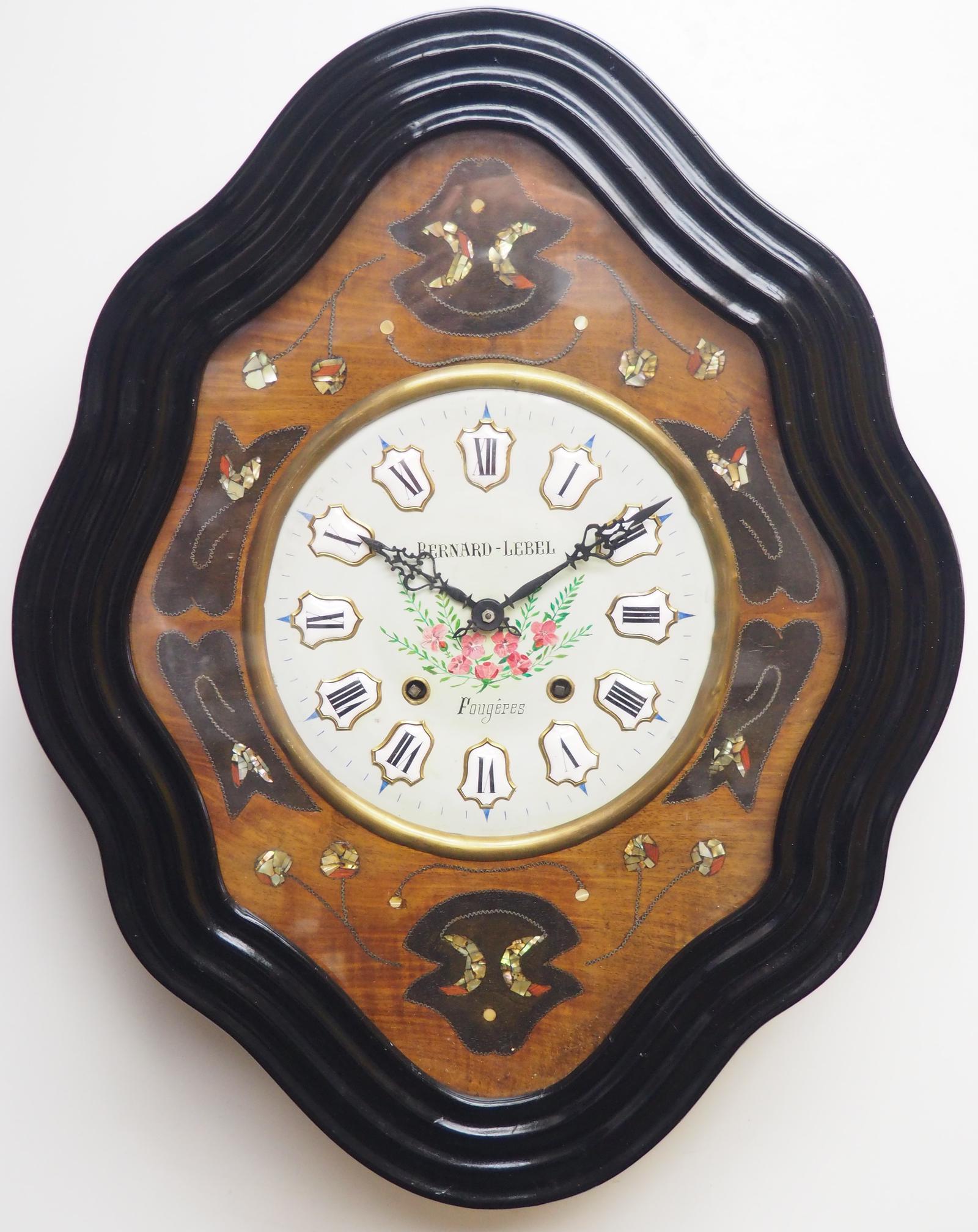 Rare Antique French Inlaid Dial Wall Clock 8 Day Movement Dial Vineyard Design