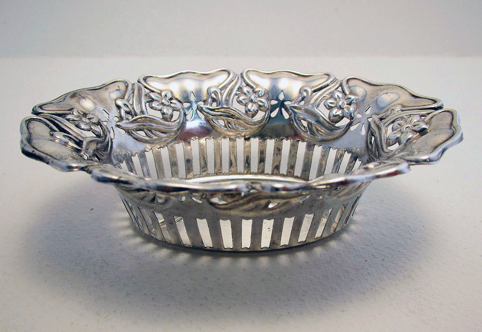 Rare Antique Indian Colonial Solid Silver Art Nouveau Bon Bon Basket / Dish / Bowl, Peter Nicholas Orr 19th Century, Madras.